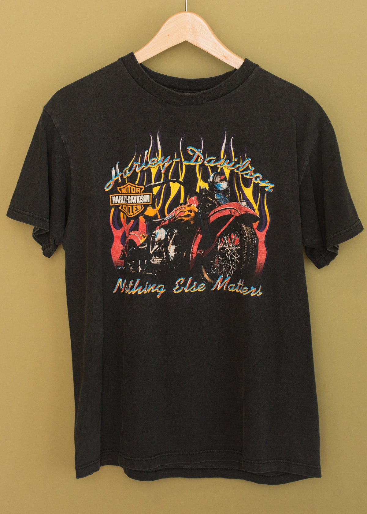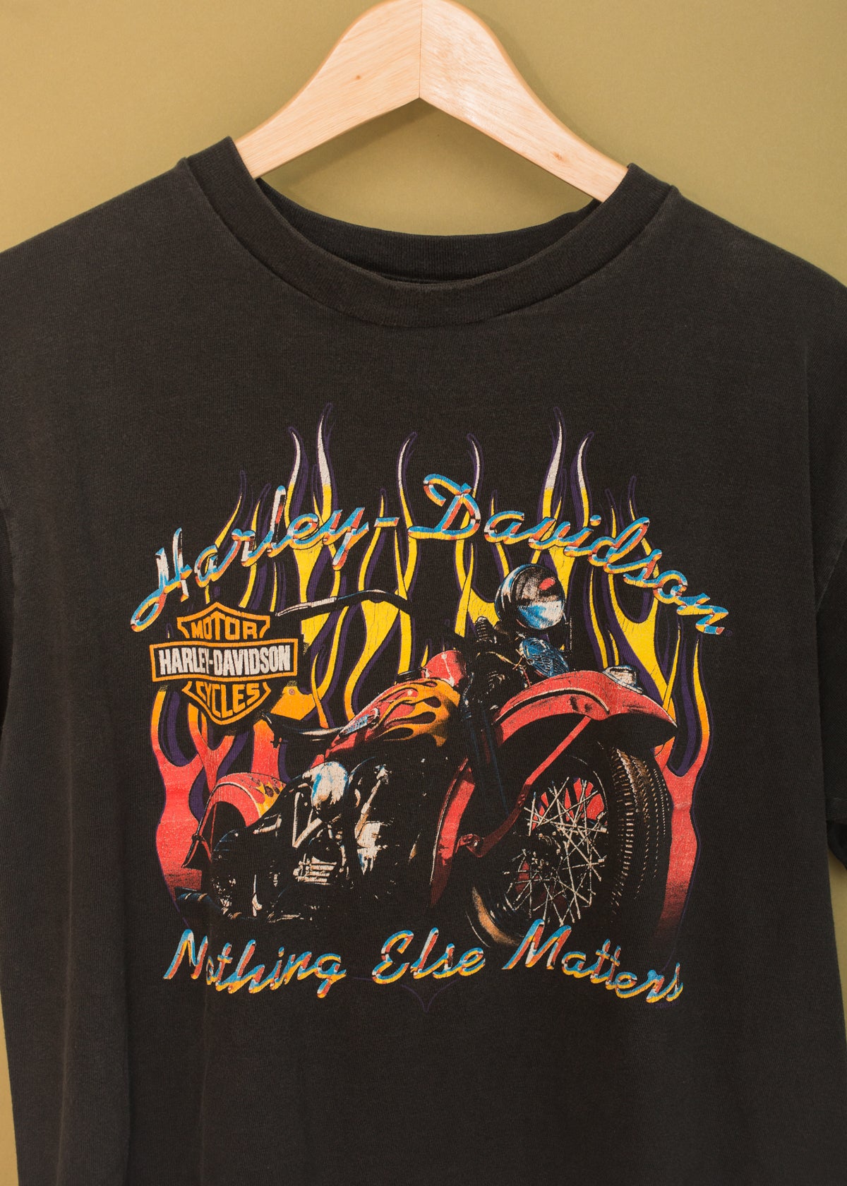 Late 90s Harley- Davidson Nothing Else Matters tee. Rad flame print. Harley Salina KS design on back. Unisex fit