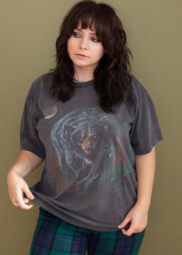 Super rad Vintage faded bear tee, worn to perfection. A grungy tee with a front and back walking bear design. Unisex fit.